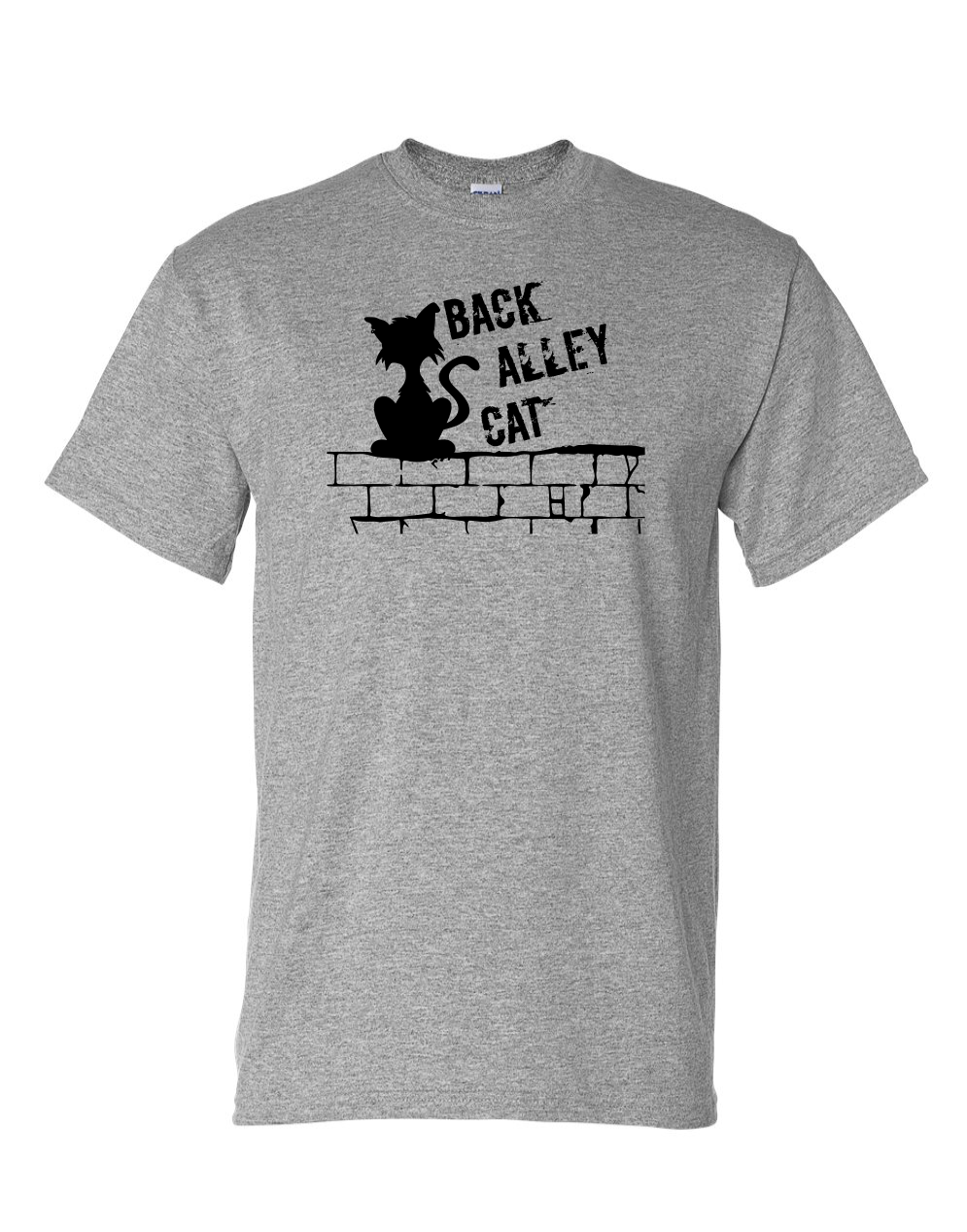 Back Alley Cat Sitting on Wall Gray T-shirt 100% Cotton / LPC / pet lovers / black cat / cat lover / white / gray / black